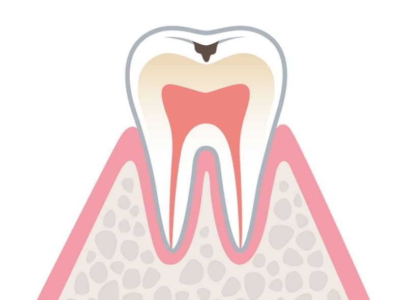 歯の外側のエナメル質が溶け出している状態です。痛みなどの自覚症状はほとんどありません。
